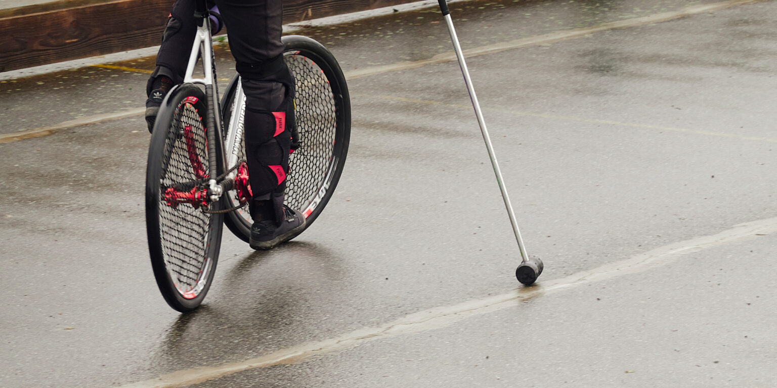 Les règles officielles n'exigent que le port du casque. Des gants renforcés sont toutefois vivement recommandés. Chez PPPC, nous imposons que les casques soient équipés d'une grille de protection. Nous encourageons également nos pratiquant.es à porter des coudières et des genouillères. Même si le bike polo s'est adouci, les coups de maillet sont douloureux et la balle vole parfois à 100km/h.